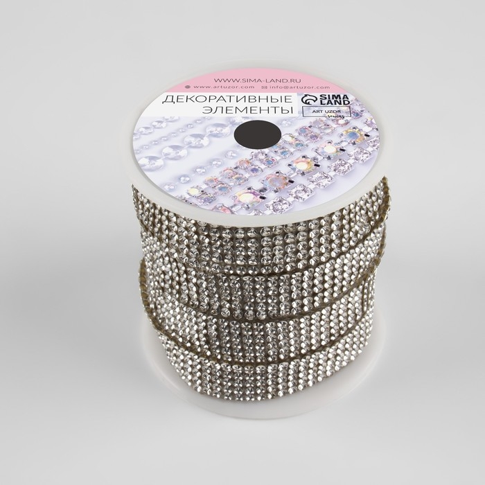 Стразы и цепочка термоклеевые, ширина - 9 мм, 4,5 ± 0,5 м, цвет серебряный