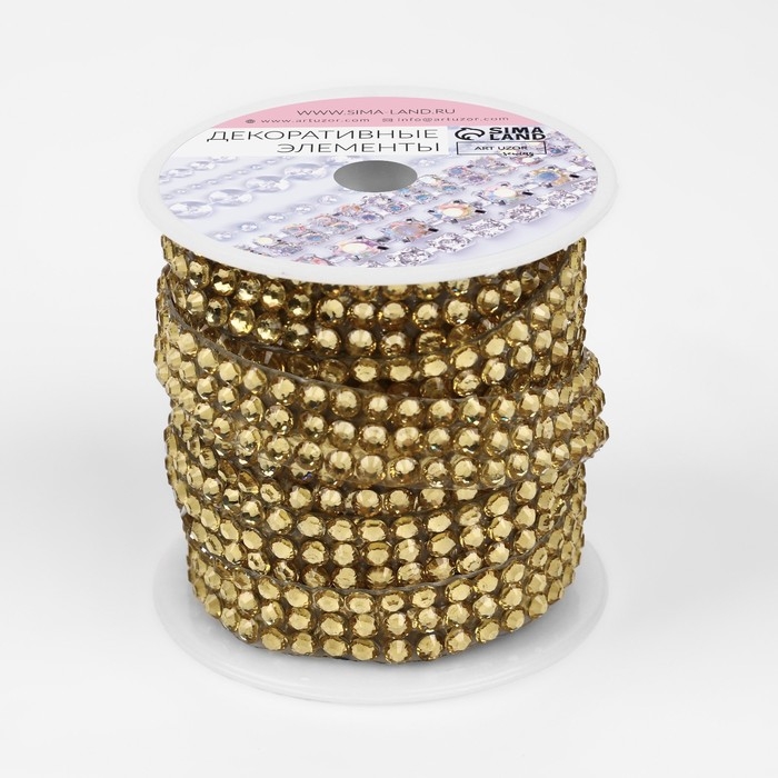 Стразы термоклеевые, d = 4 мм, ширина - 12 мм, 4,5 ± 0,5 м, цвет золотой