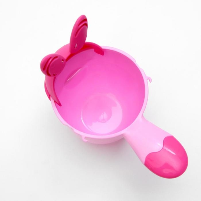 Ковш пластиковый для купания и мытья головы, детский банный ковшик «Зайка» 500 мл., с леечкой, цвет розовый