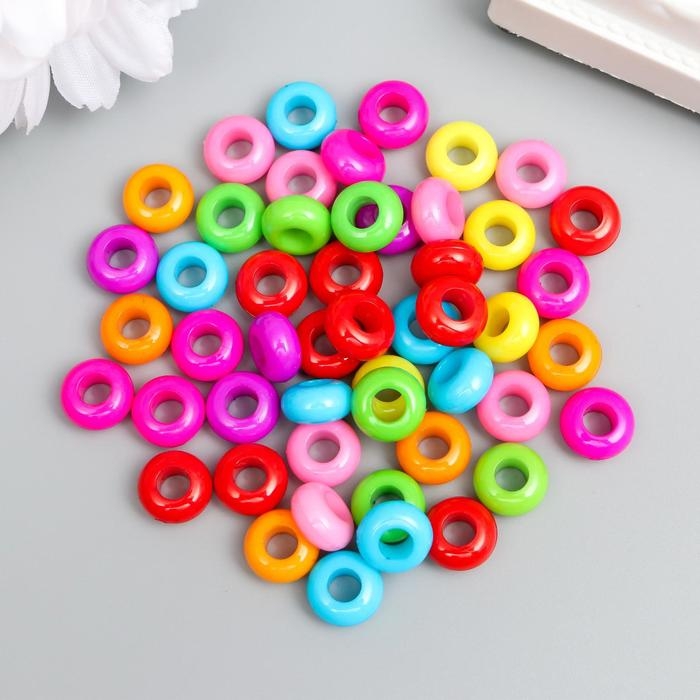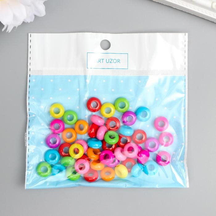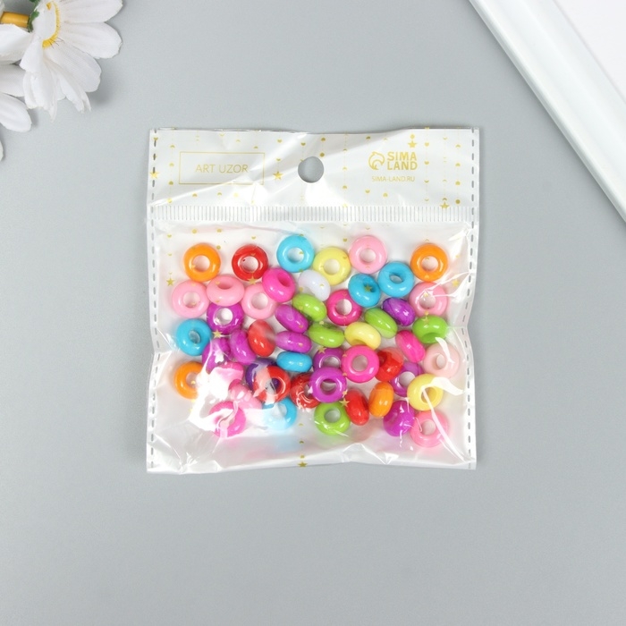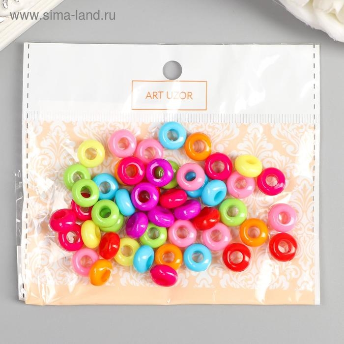 Бусины для творчества пластик "Плоские разноцветные" набор 50 шт 0,6х1,1х1,1 см