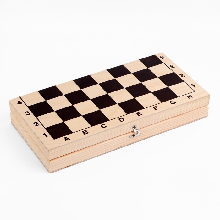 Шахматная деревянная лакированная доска из качественных пиломатериалов: каркас выполнен из сосны, поле - берёзовая фанера. Размер доски в разложенном виде 29 х 29 см. Доска имеет аккуратную и надежную фурнитуру и вместительный отсек для хранения.