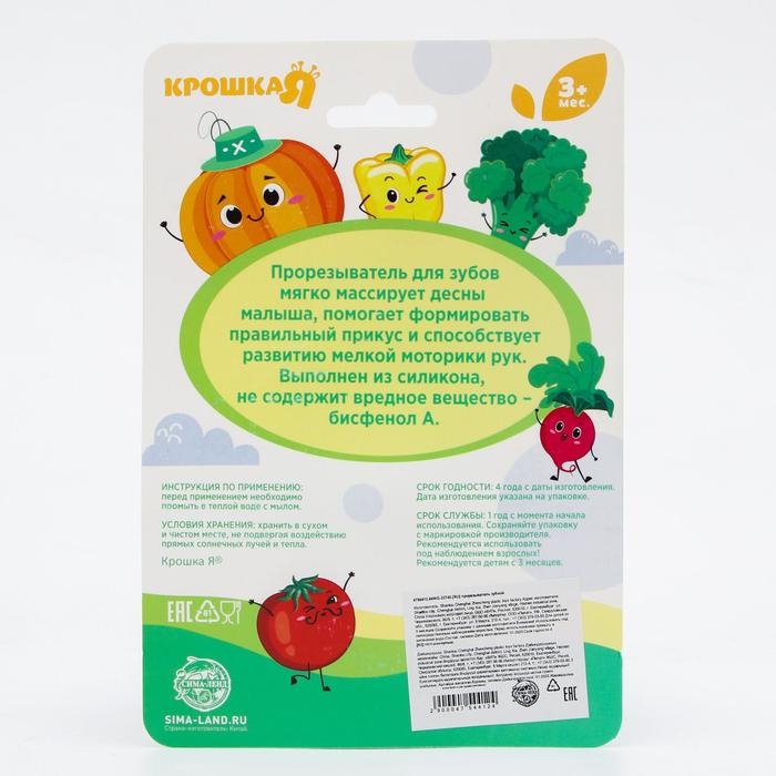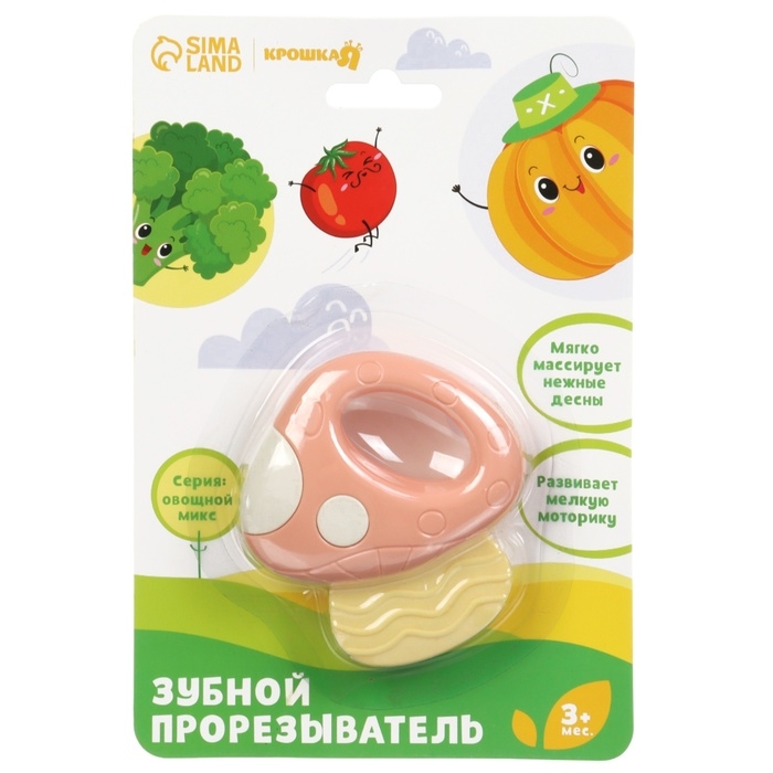 Погремушка с прорезывателем «Овощной МИКС, Крошка Я: Грибочек», цвет МИКС, Крошка Я