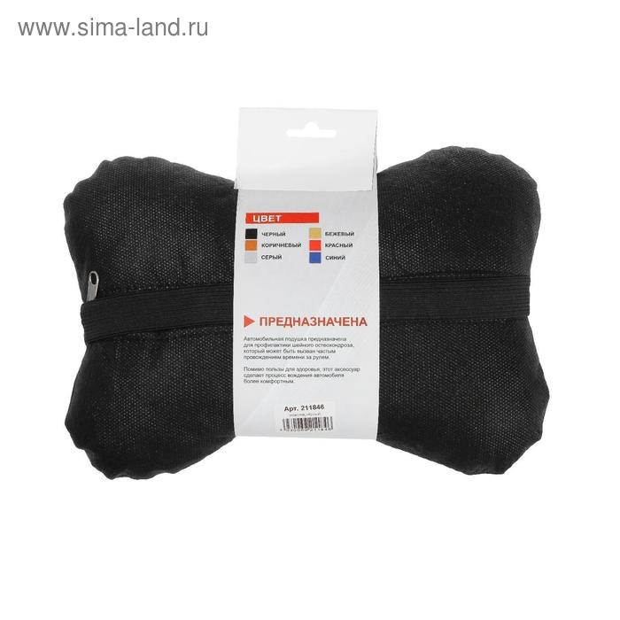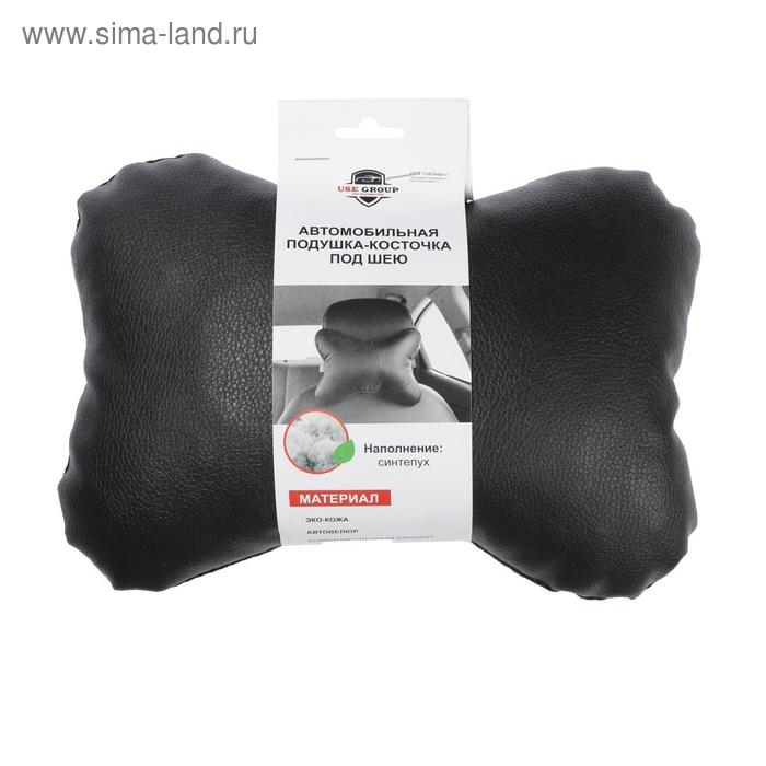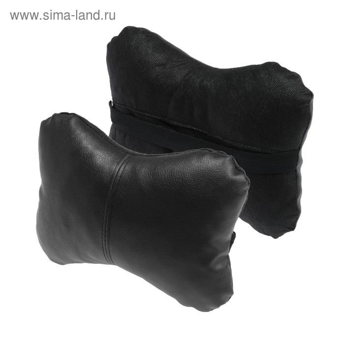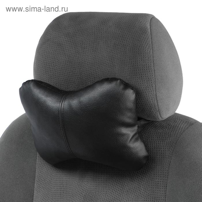 Подушка автомобильная косточка, на подголовник, экокожа, чёрный, 16х24 см