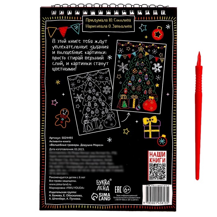 Активити-книга «Волшебные гравюры. Дедушка Мороз», 12 стр.