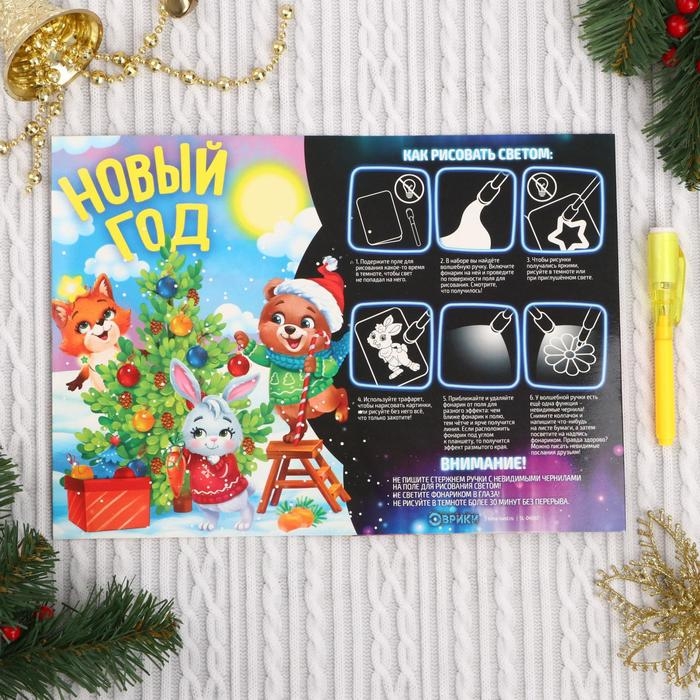 Рисование светом. Набор для рисования в темноте «Новый год», голубой, А5