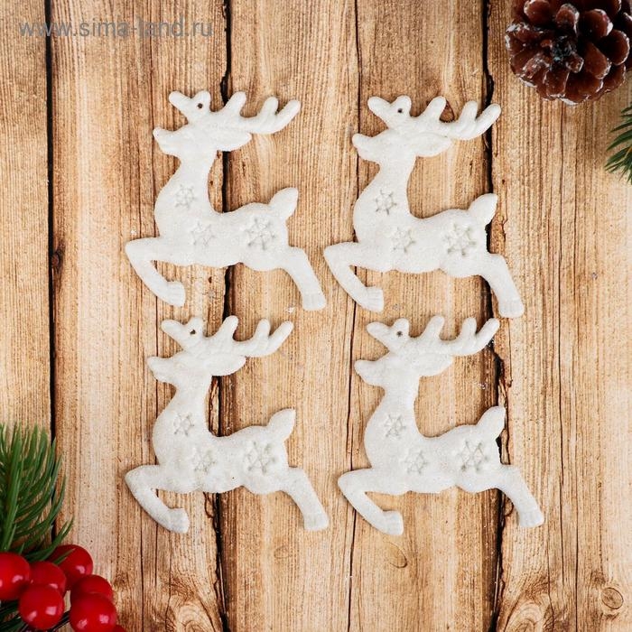 Украшение ёлочное "Олени снежинки" (набор 4 шт) 5х7 см, белый