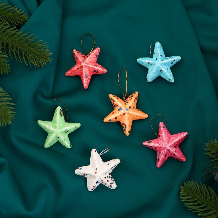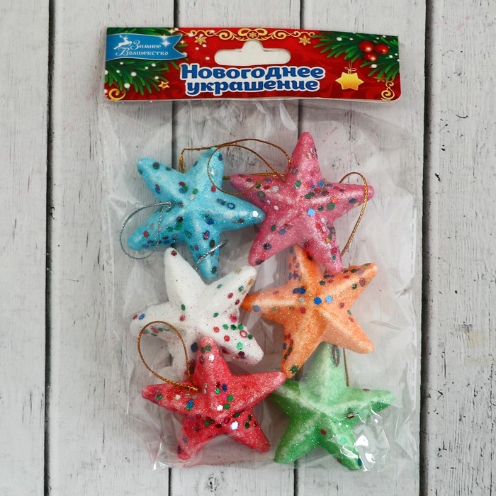 Украшение ёлочное "Радужные звёзды - магия" (набор 6 шт) 5 см, микс