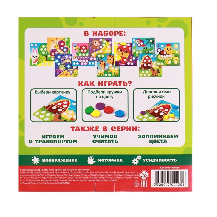 Набор можно использовать многократно, придумывая новые правила игры. Кружочки можно использовать как счётный материал. С "Весёлыми кружочками" развиваем моторику, воображение и усидчивость!