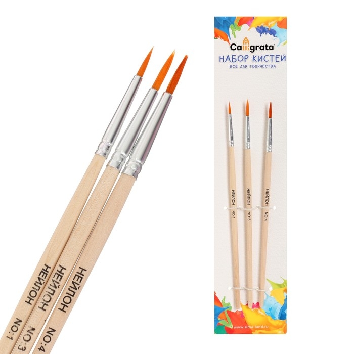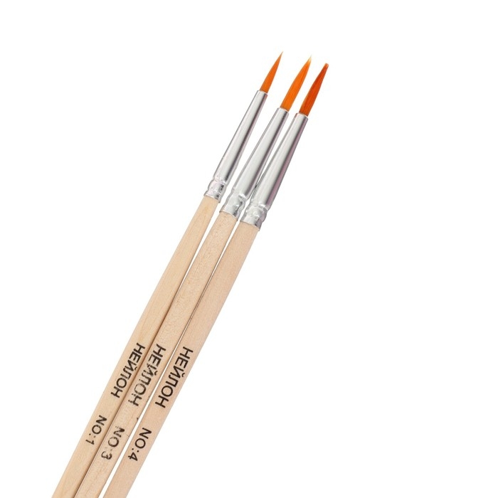 Набор кистей синтетика круглые 3 штуки (№1,3,4) с деревянными ручками в пакете