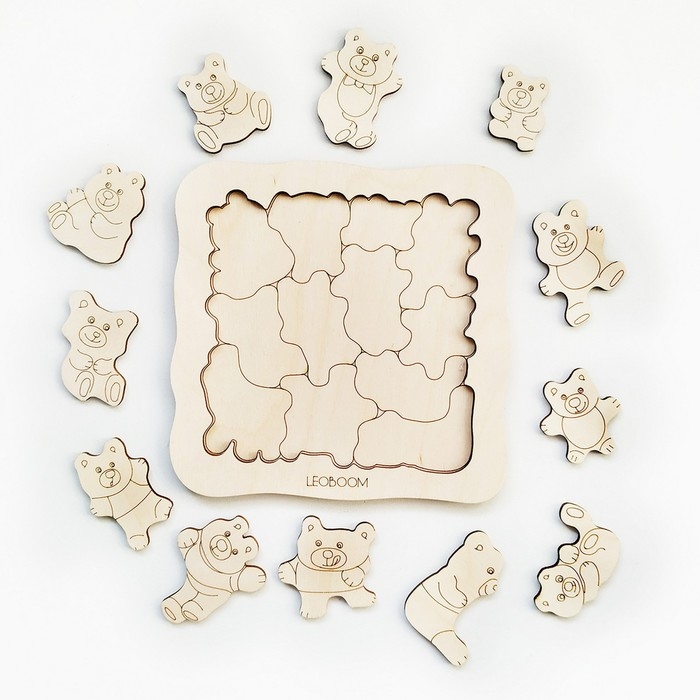 - Раскрасьте мишек любыми красками, карандашами или фломастерами. Создайте собственный неповторимый авторский пазл.