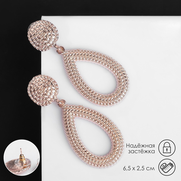 Серьги металл «Барбадос» капли, цвет розовое золото