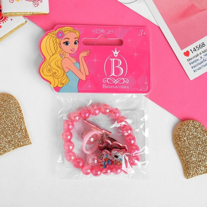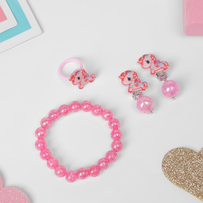 Набор детский «Выбражулька» 3 предмета: клипсы, браслет, кольцо, единороги, красный