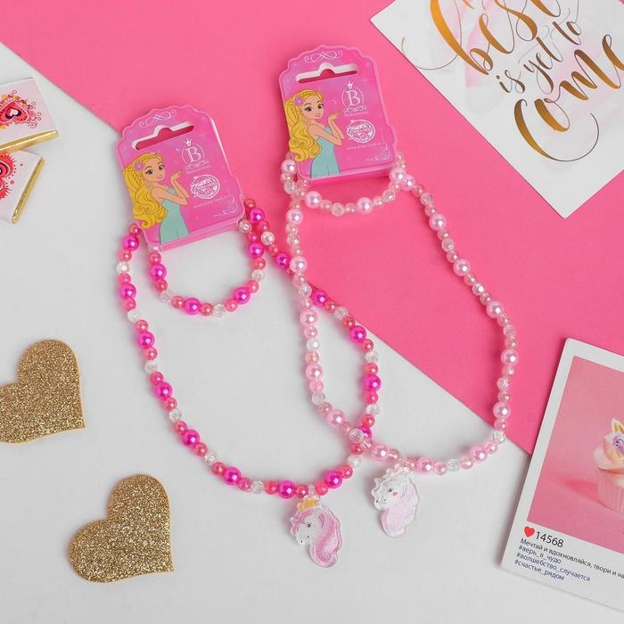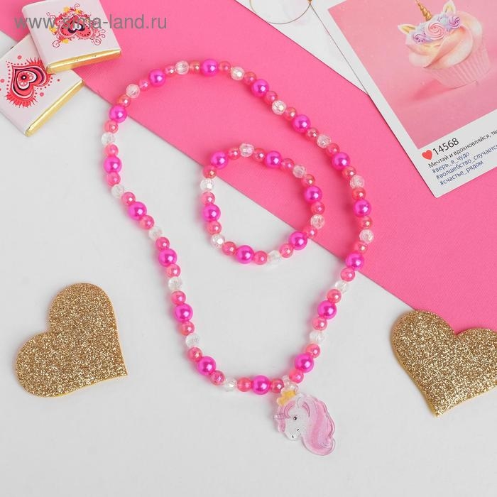 Набор детский «Выбражулька» 2 предмета: кулон, браслет, единорог, цвет МИКС