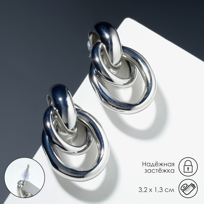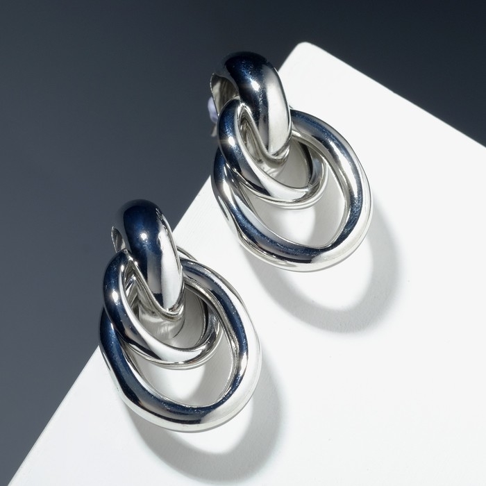 Серьги металл «Геометрия» овалы на кольце, цвет серебро