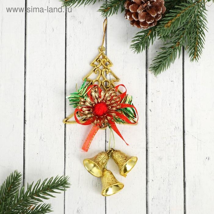 Украшение новогоднее "Колокольчик нарядная ёлка" 8х15 см, красно-золотой