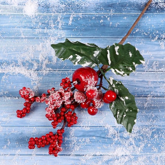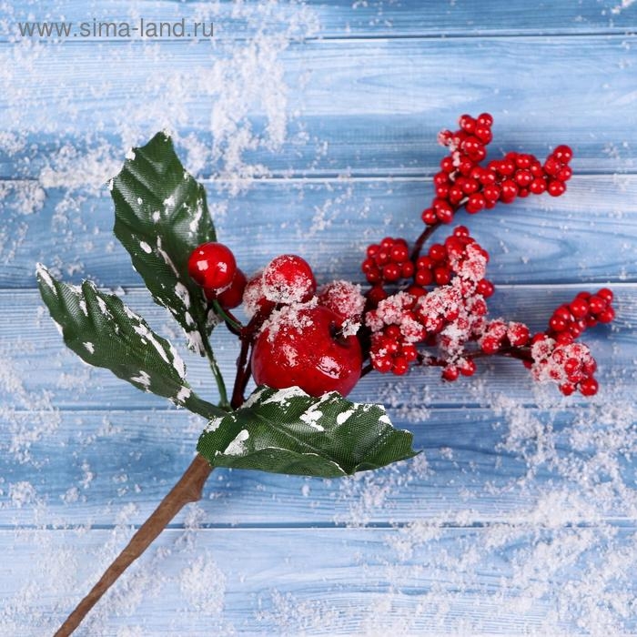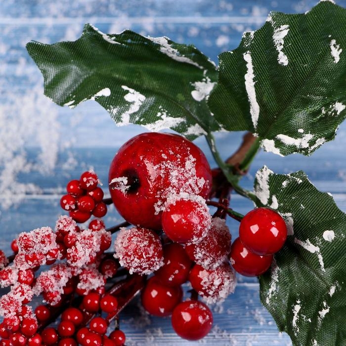 Декор "Зимнее очарование" яблоко ягоды зелень на ветке, 25 см