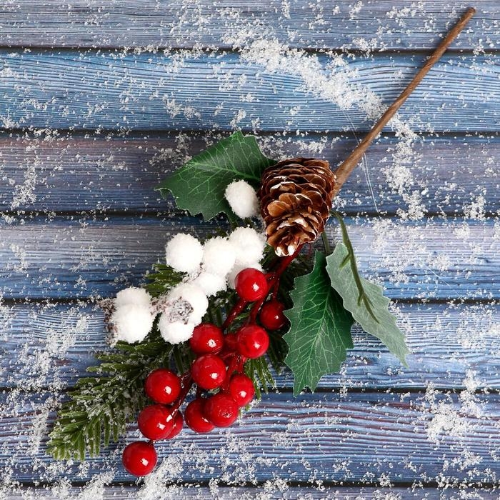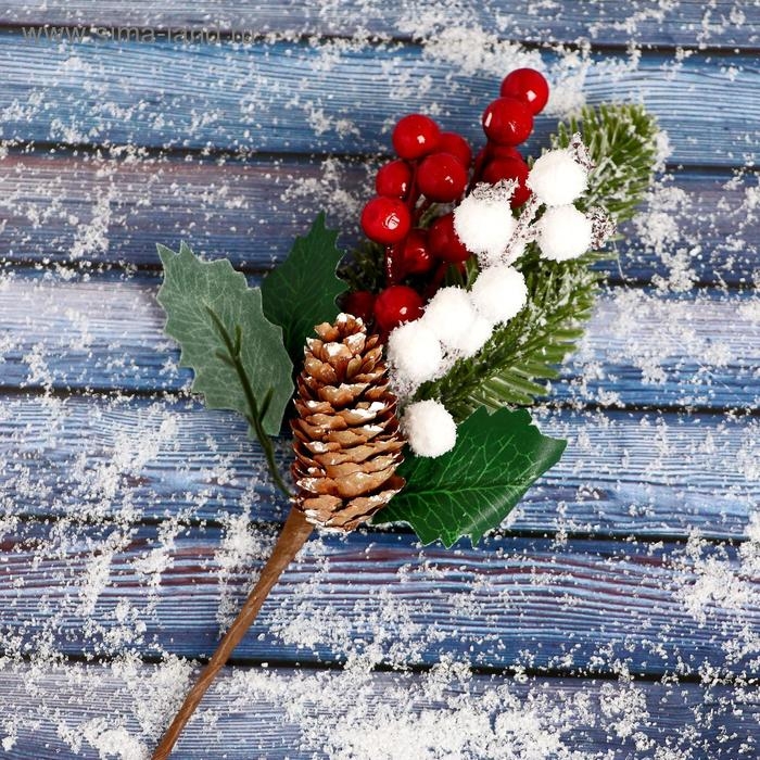 Декор "Зимнее очарование" шишка ягоды красные белые хвоя, 25 см