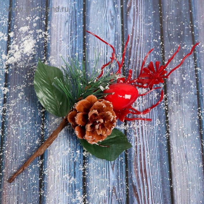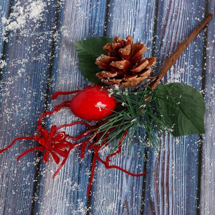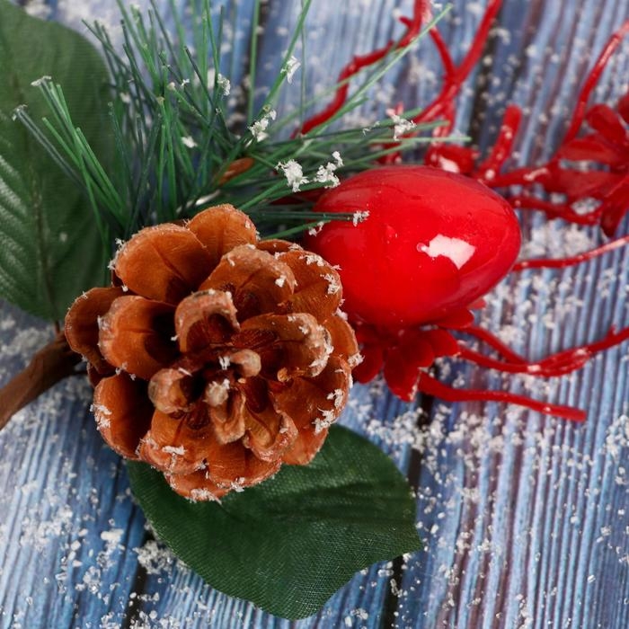 Декор "Зимнее очарование" алые ветки и цветок 16 см