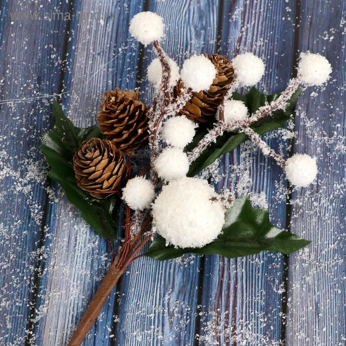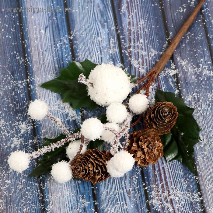 Декор "Зимнее очарование" яблоки ягоды в белом шишки, 22 см