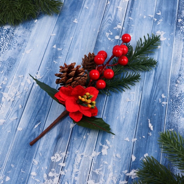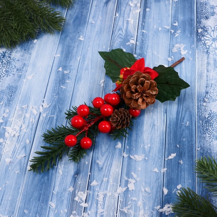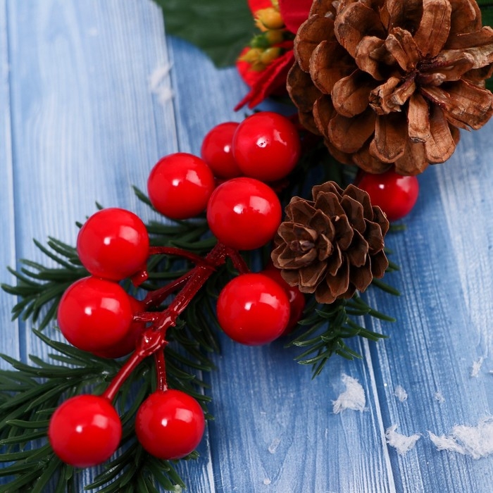 Декор "Зимнее очарование" шишки ягоды алый цветок, 30 см