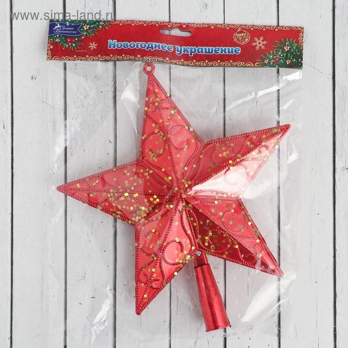 Наконечник "Звезда" блестящая с узором, 20х22 см красный