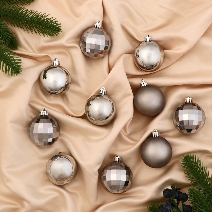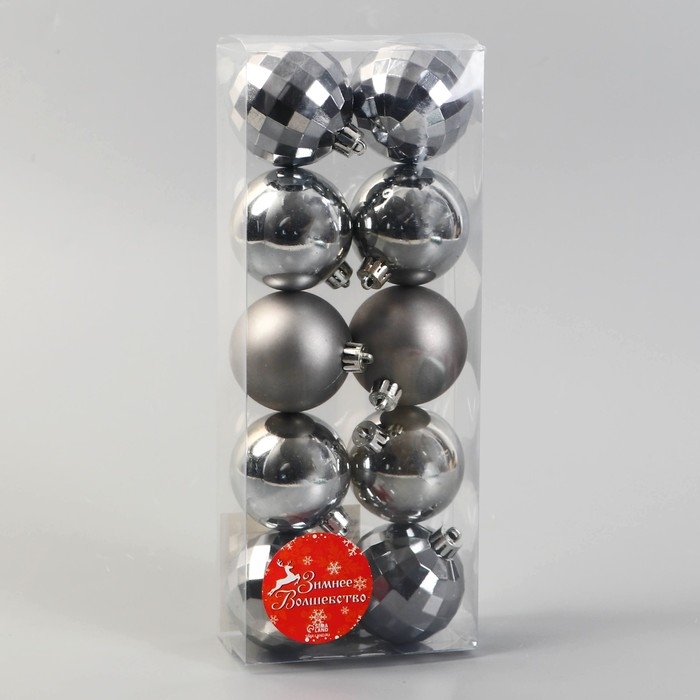 Набор шаров пластик d-5 см, 10 шт "Диско гламур" тёмно-серый