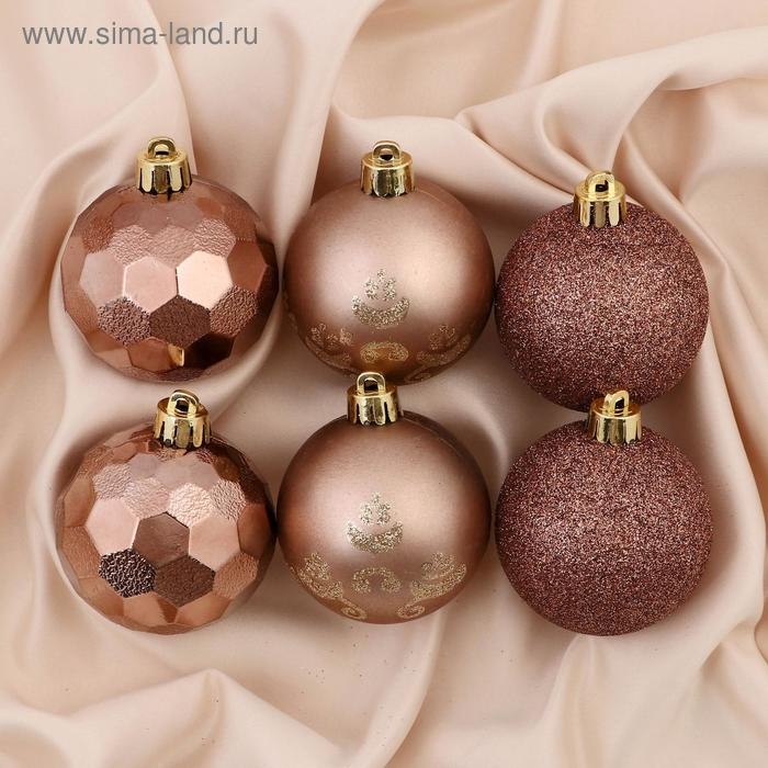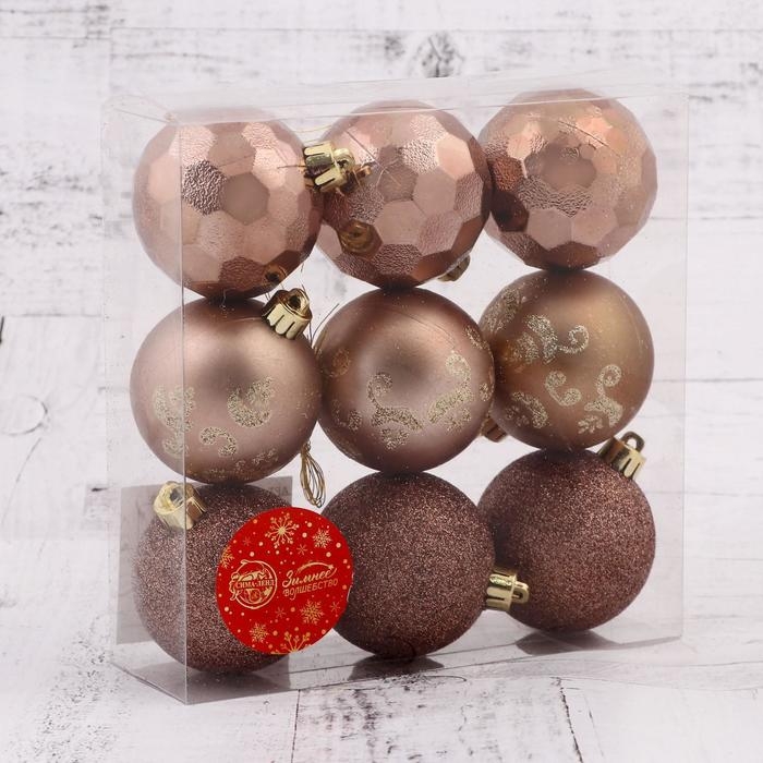 Набор шаров пластик d-6 см, 9 шт "Грани" коричневый