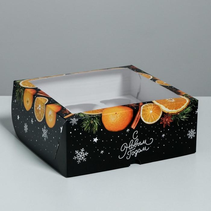Коробка для капкейка «Золото», 23 х 16 х 11.5 см, Новый год