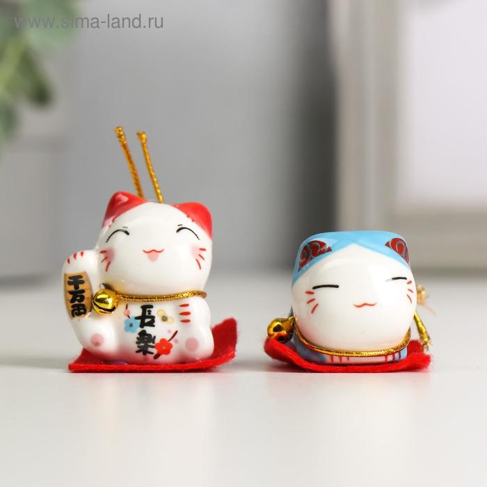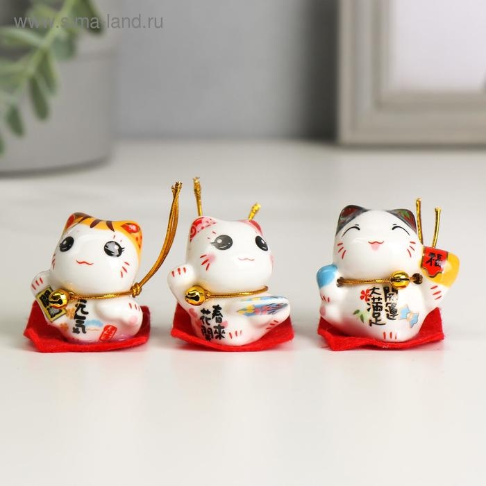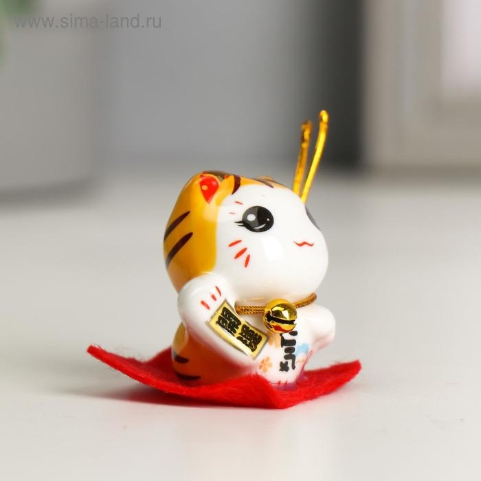 Сувенир керамика "Манэки-нэко малыш на коврике" МИКС 4х4,4х2,5 см