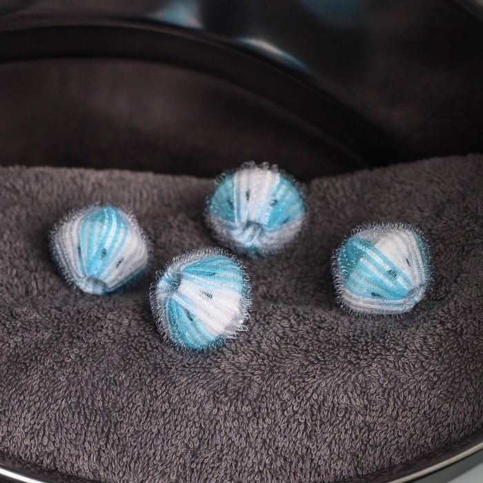 Шарики для стирки белья Доляна, d=3,3 см, 4 шт, цвет бело-голубой