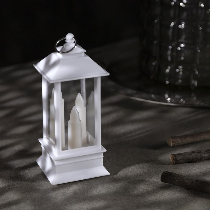 Светодиодная фигура «Белый фонарь со свечками» 5.5 × 13 × 5.5 см, пластик, батарейки AG13х3 (в комплекте), свечение тёплое белое