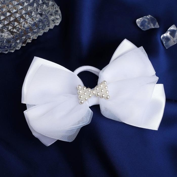 Резинка для волос "Школьница" бусинки 11х8 см, белый