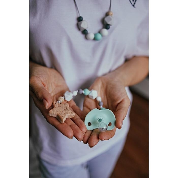 Пустышка с держателем, набор, в контейнере, коричневый