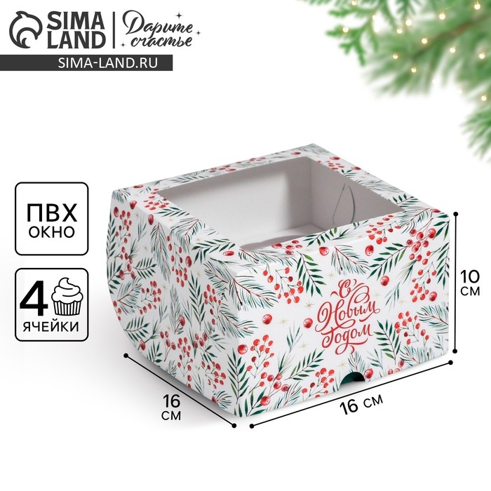 Коробка для капкейков «С Новым Годом» 16 х 16 х 10 см, Новый год