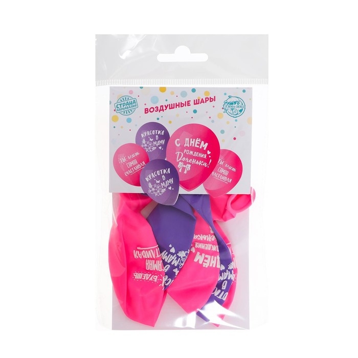 Воздушный шар латексный 12" «С днём рождения, доченька», 5 шт.