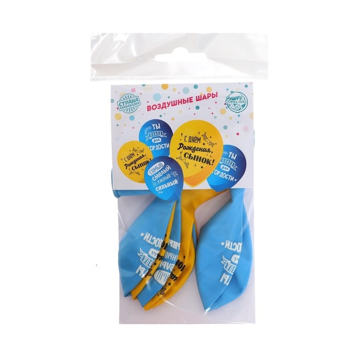 Воздушный шар латексный 12" «С днём рождения, сынок», 5 шт.
