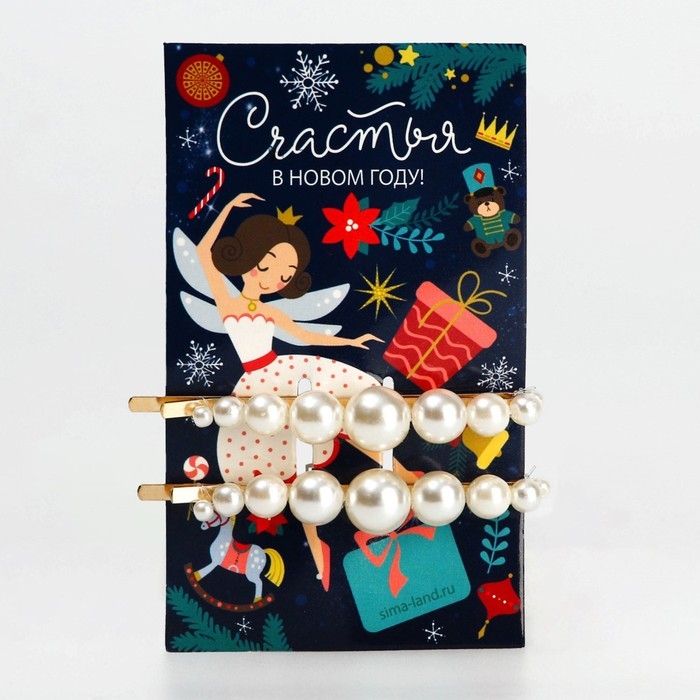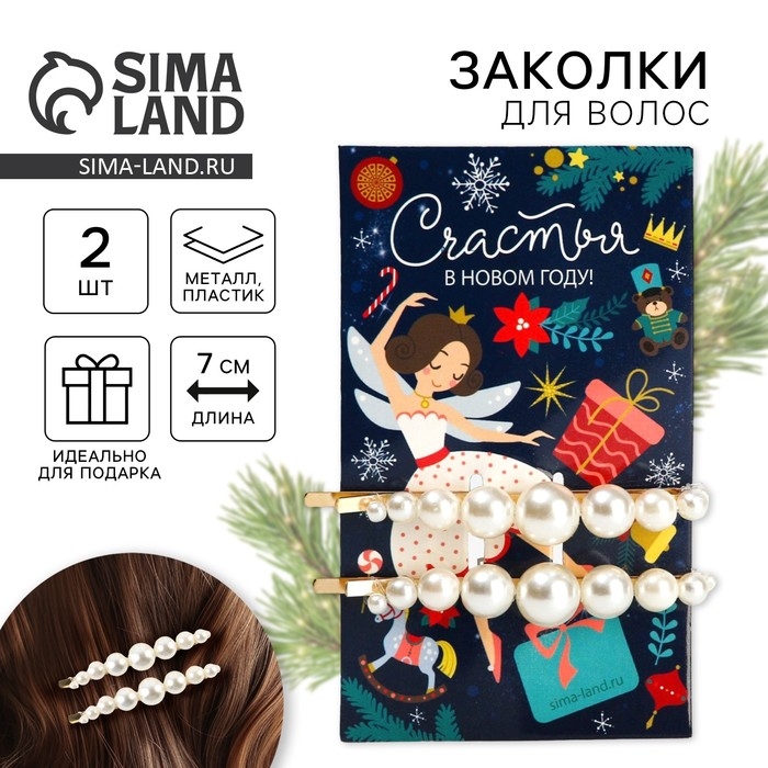 Заколка для волос новогодняя «Счастья в новом году!» на Новый год, набор 2 шт, 7 х 1 см