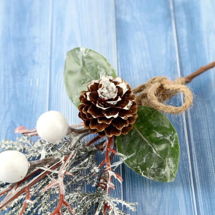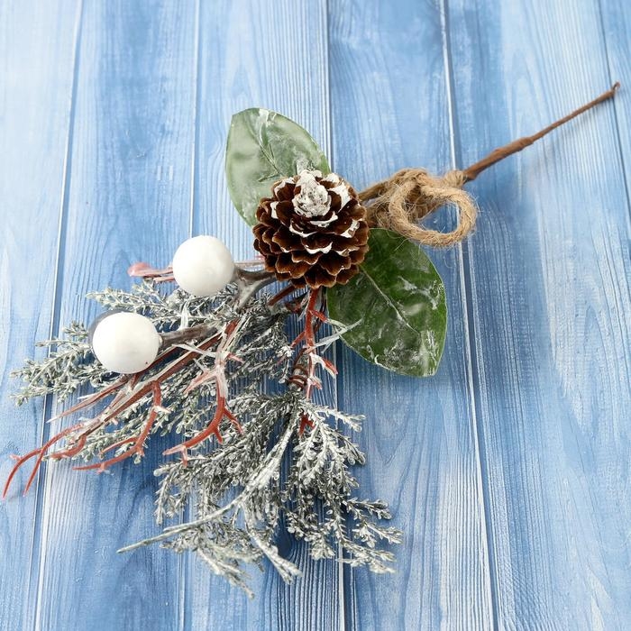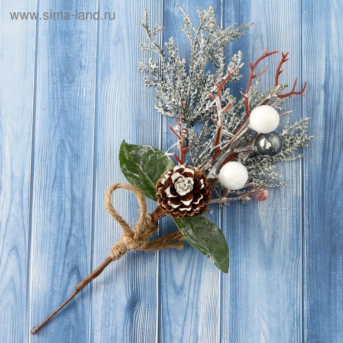 Декор "Зимнее очарование" шишка шарики веточки в серебре, 20 см