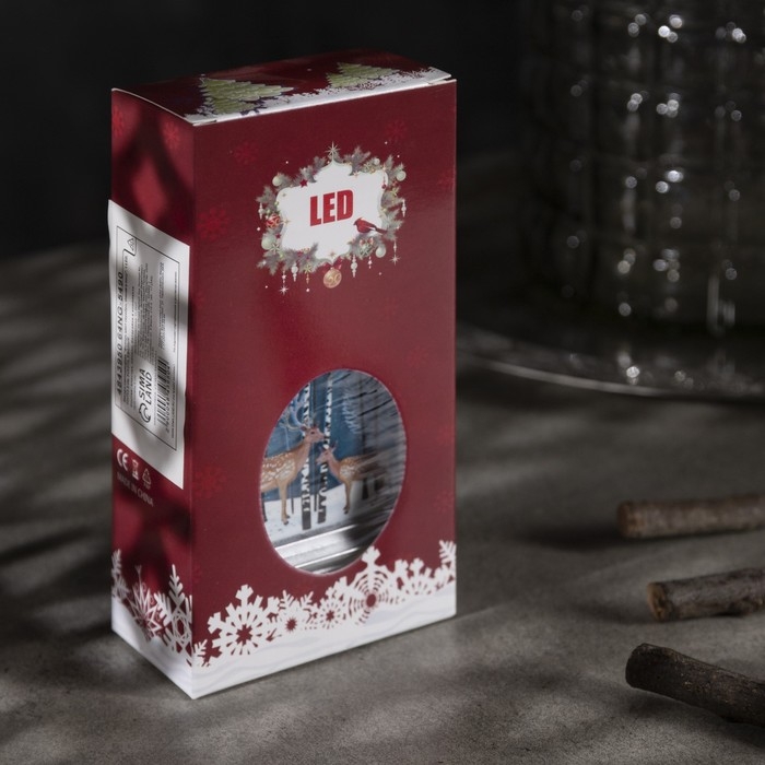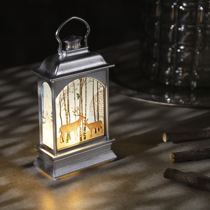 Светодиодная фигура «Серебристый фонарь с оленями» 7 × 13 × 3.5 см, пластик, батарейки AG13х3 (в комплекте), свечение тёплое белое