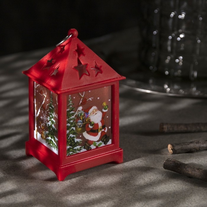 Светодиодная фигура «Фонарь с Дедом Морозом» 6 × 13 × 6 см, пластик, батарейки AG13х3 (в комплекте), свечение тёплое белое