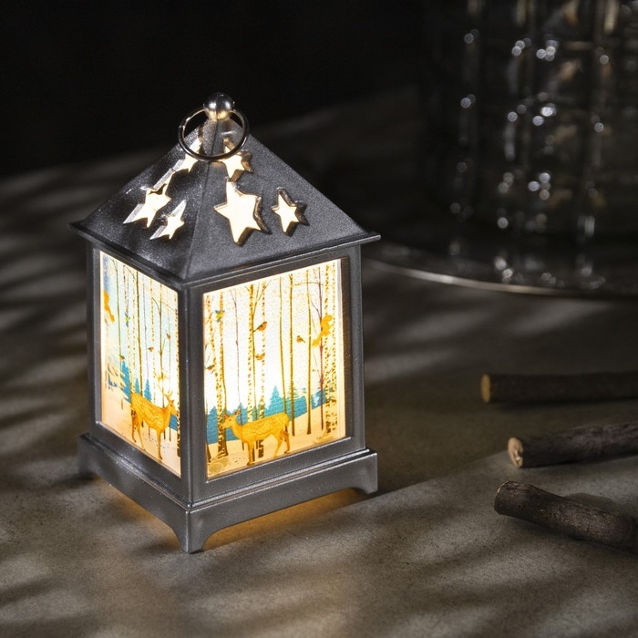 Светодиодная фигура «Фонарь с оленем» 6 × 13 × 6 см, пластик, батарейки AG13х3 (в комплекте), свечение тёплое белое