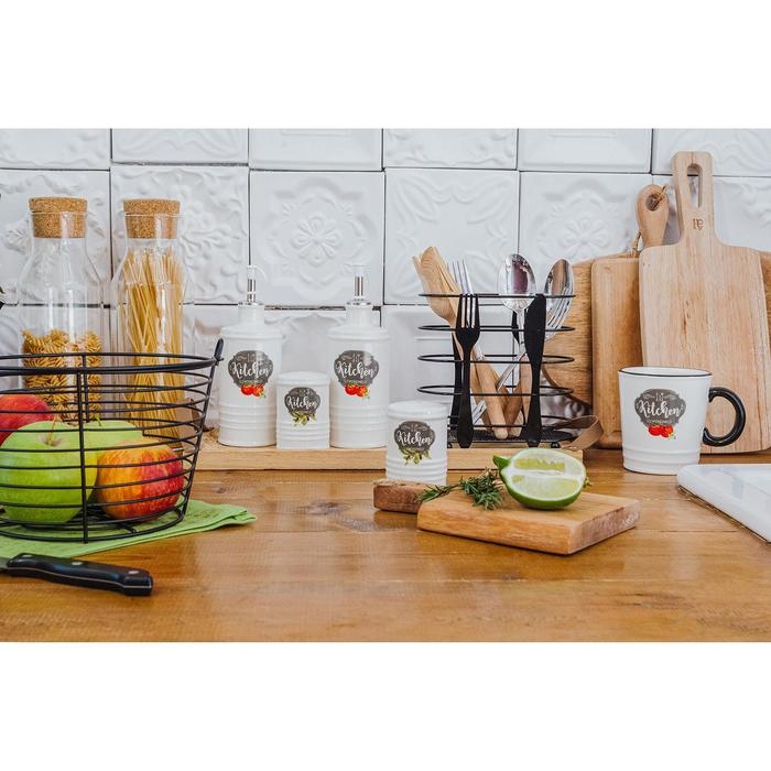 Набор фарфоровый для специй BellaTenero, 5 предметов: солонка 50 мл, перечница 50 мл, сахарница с ложкой 200 мл, подставка-держатель, цвет белый