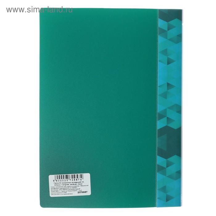 Набор папок А5, 20 вкладышей, Calligrata, карман на корешке, зеленые, 3 штуки