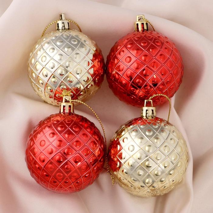 Набор шаров пластик d-6 см, 4 шт "Оливия" красный золото