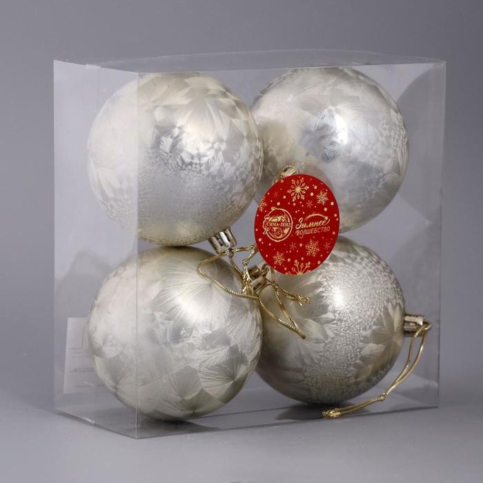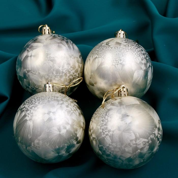 Набор шаров пластик d-8 см, 4 шт "Туман" золото