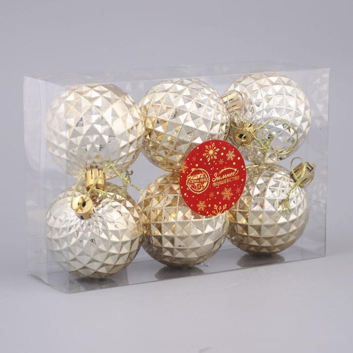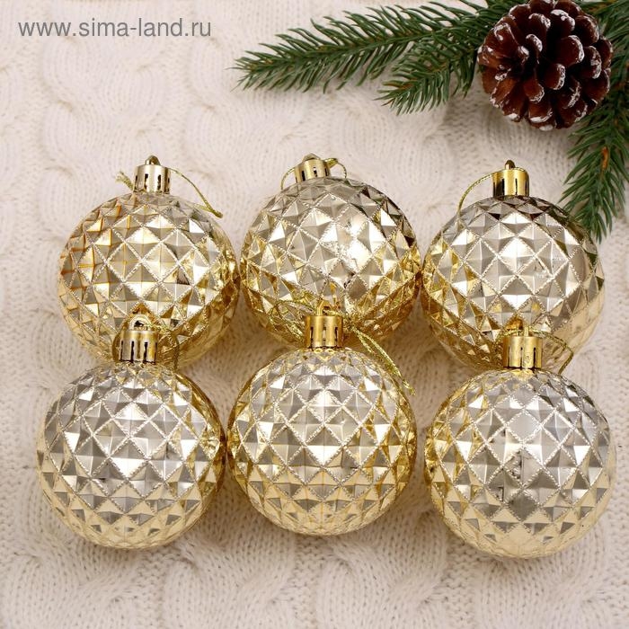 Набор шаров пластик d-6 см, 6 шт "Объёмная сеточка" золото