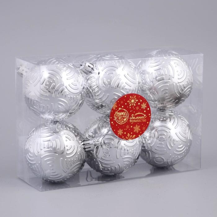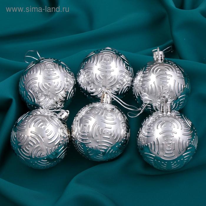 Набор шаров пластик d-6 см, 6 шт "Объёмные бантики" серебро