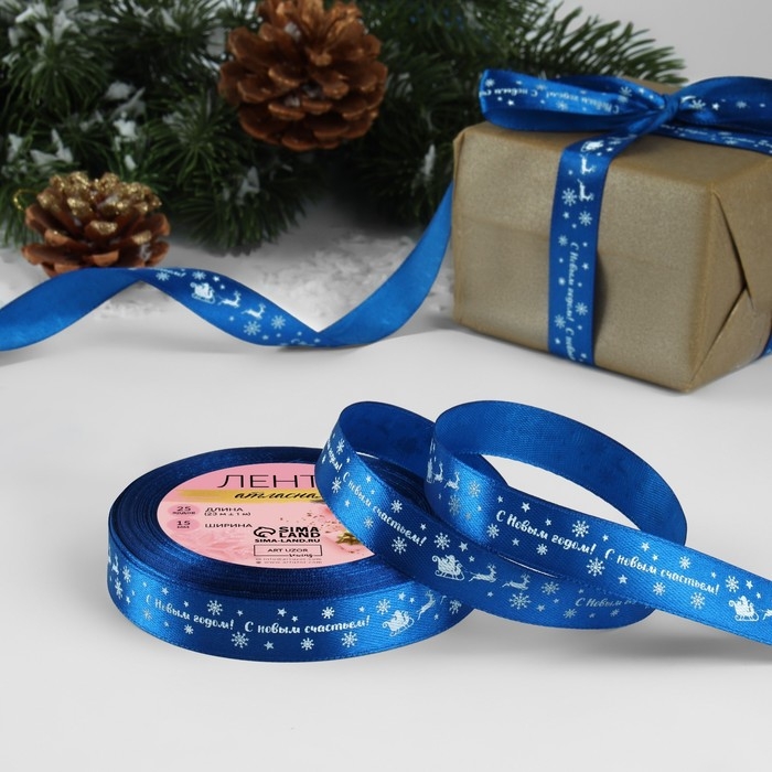 Новый год! Лента атласная «С Новым годом», 15 мм, 23 ± 1 м, цвет синий №122