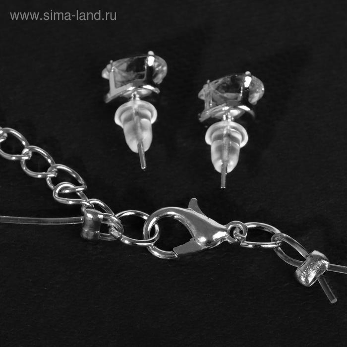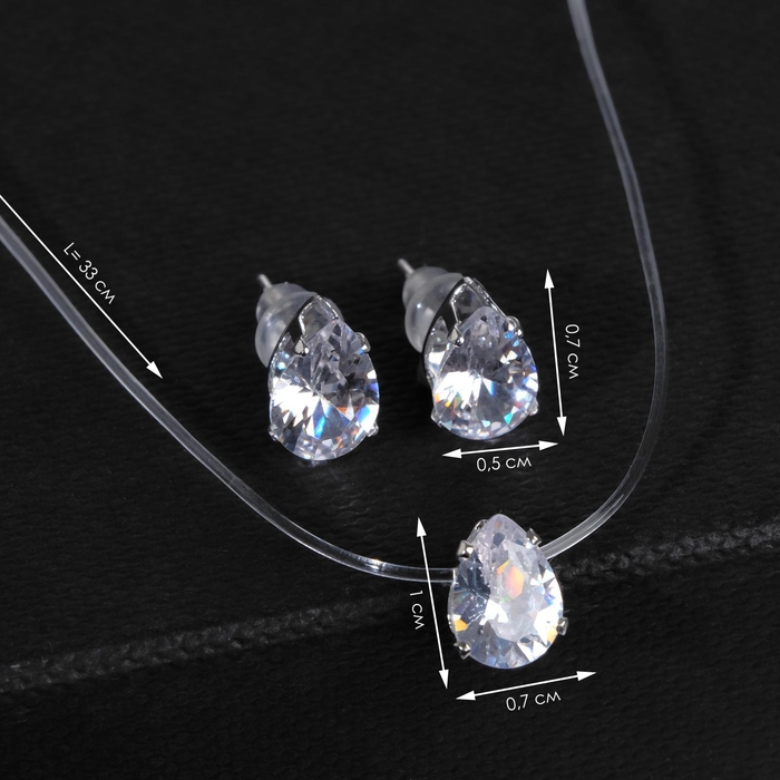 Гарнитур 2 предмета: серьги, кулон «На леске» капелька, цвет белый в серебре, 35см