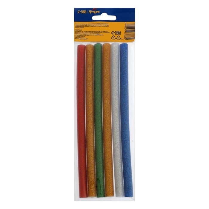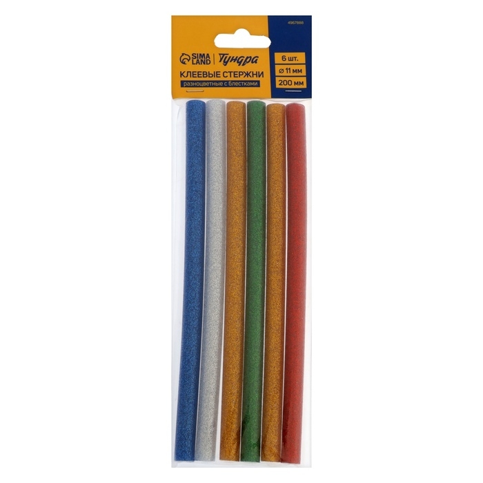 Клеевые стержни ТУНДРА, 11 х 200 мм, разноцветные с блестками, 6 шт.